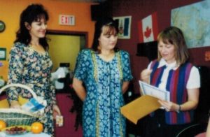 In the mid-90s, Mugs and Bob took over the South Okanagan Yoga Association, changing it into the South Okanagan Yoga Academy, and Mugs and Dariel Vogel created a yoga teacher training program, based on the I.Y.T.A. program. One day, Mugs asked me out to tea, and told me she wanted me to be one of the first students in the program. Yikes! I had never considered teaching yoga! But in September 1995, along with two other students, Meui and Rockne, we began. It took two and a half years, meeting once a month, usually at Dariel’s home. (I remember having wine in the hot tub on occasion after a session!) The three of us graduated in the Spring of 1998 with dinner and a celebration.